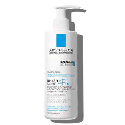 NEW Lipikar Baume AP+M immediately soothes eczema-prone skin. It has a reinforced anti-scratching, anti-relapse efficacy and rebalances skin microbiome.