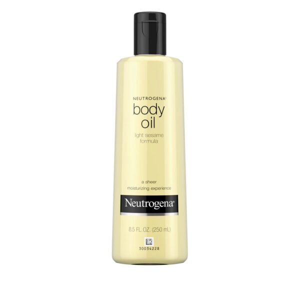 This Body Oil glides on easily for a sheer moisturizing experience and nourished skin that feels soft and silky. This lightweight body oil helps relieve dryness and pampers your skin as a sheer moisturizer that instantly vanishes and absorbs, providing essential hydration by locking in moisture without leaving a greasy feel. The light sesame oil formula leaves your skin with a radiant, healthylooking glow — the ideal choice for body oil after shower care. This skin moisturizing Neutrogena body oil provides instant hydration, and the dry skin moisturizer provides nourishment for skin to help maintain essential moisture without the heavy feeling of a lotion. To use after a shower or bath, smooth on a few drops from the massage oil bottle and gently rub onto body while still damp. Add body skin oil to bath water and use as a bath oil to help soften and nourish your skin.